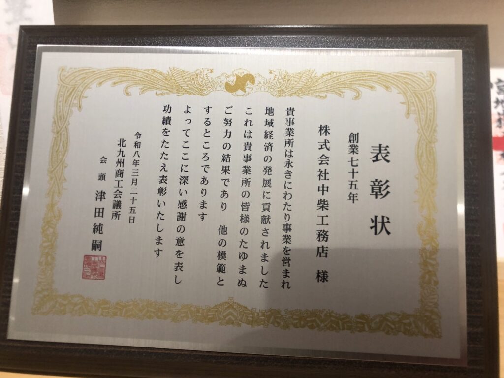 北九州商工会議所主催の永年継続企業表彰に参加いたしました。